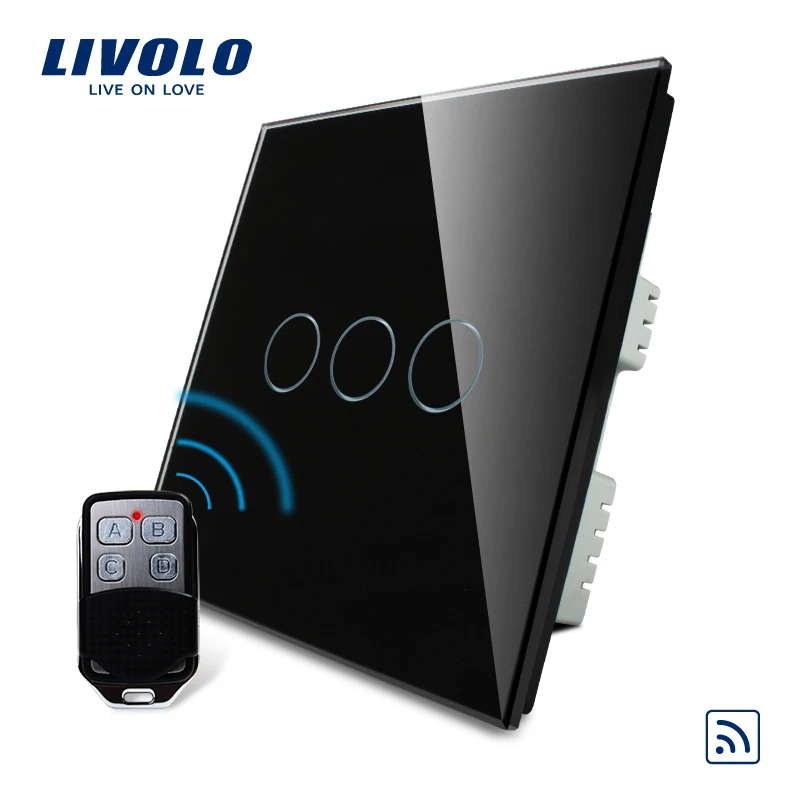 Livolo UK standard SwitchAC 220-250 VL-C303R-61&VL-RMT-02 3colors Crystal Glass PanelWireless Remot