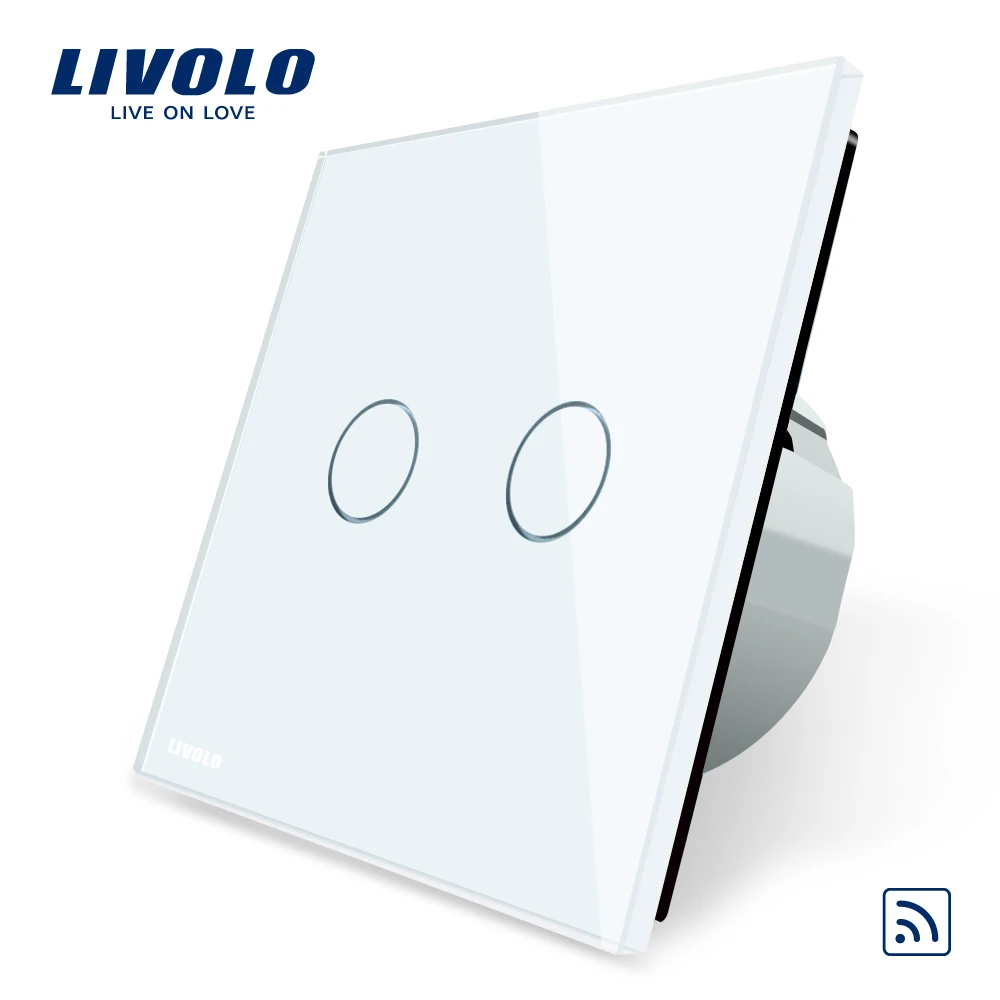 TOP Livolo EU Standard Remote Switch Crystal Glass Panel EU standardWall Light Remote Touch Switch+LED